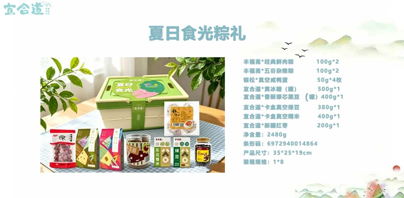 丰福斋*经典鲜肉粽 100g*2 丰福斋*五谷杂粮粽 100g*2 银松*真空咸鸭蛋 50g*4枚 宜合道*黄冰糖(罐) 500g*1 宜合道*香酥绿芯黑豆(罐)400g*1 宜合道*卡盒真空绿豆 380g*1 宜合道*卡盒真空糯米 400g*1 宜合道*新疆红枣 200g*1 净含量:2480g 条形码:6972940014864 产品尺寸:35*25*19cm
