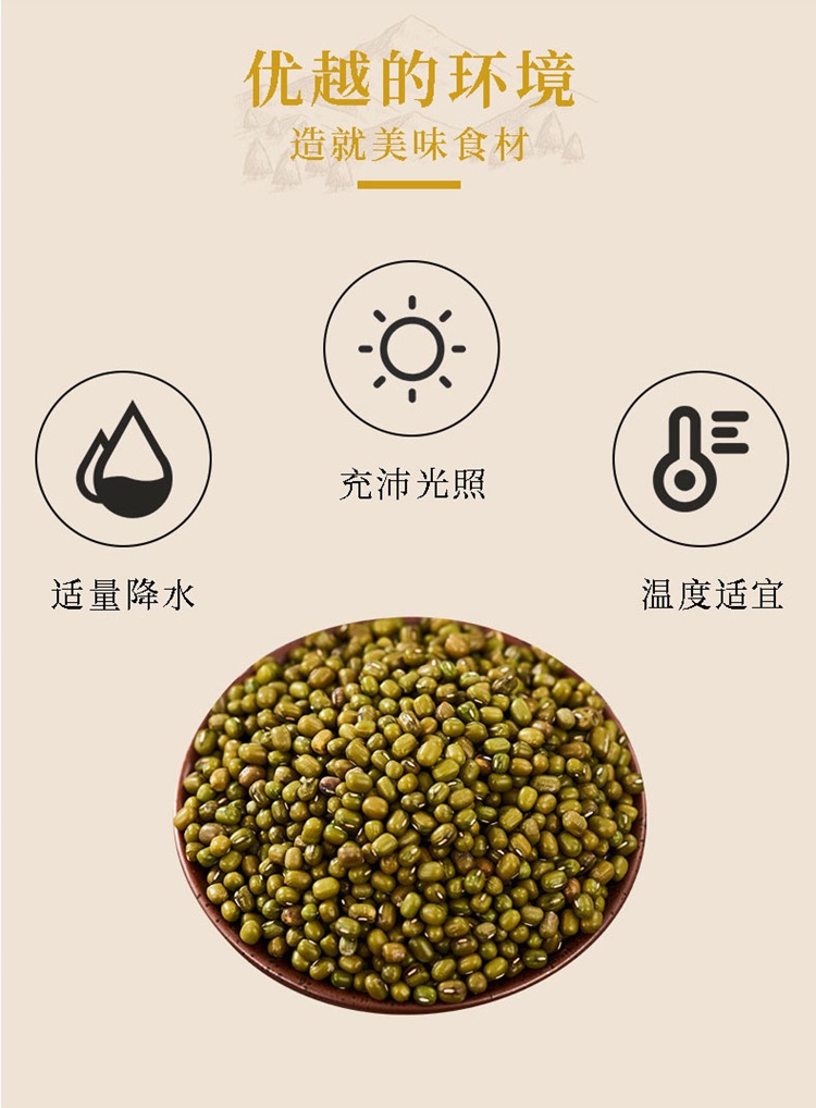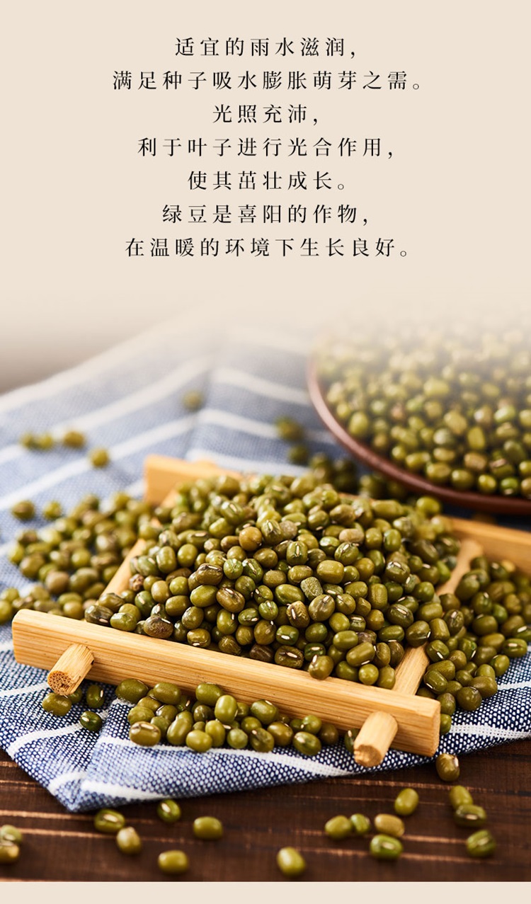 原料:东北大颗粒绿豆 产地:吉林白城 净含量:2.5kg 产品尺寸:37*17*35cm 条形码: 6972940010484
