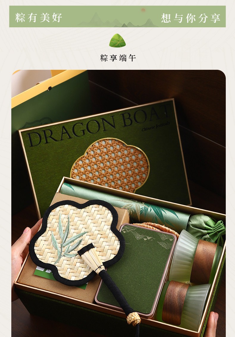 304弹跳保温杯 端午节艾草香囊流苏挂件 竹影双面茶席24*47cm 真真老老手工粽130g*2 溢流香咸鸭蛋55g*2 天然檀木鹿角六爪按摩梳 仲夏消暑迷你编织蒲扇 云南普洱熟茶小茶饼 端午福粽竹编天地盖礼盒礼袋 礼盒尺寸:31*22*14cm