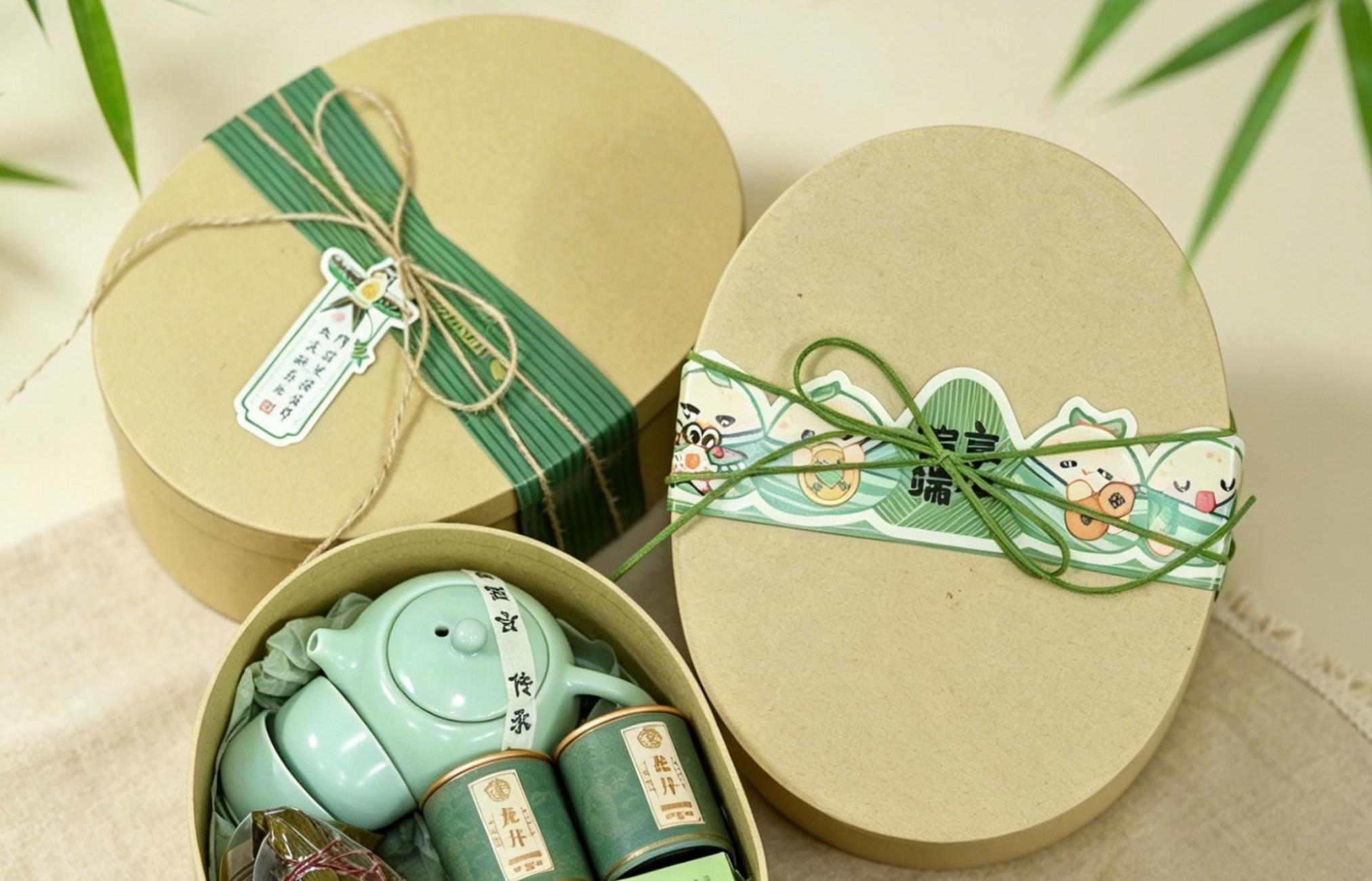 真真老老经典鲜肉粽130g*1 真真老老红袍豆沙粽130g*1 定窑西施壶茶具1壶2杯(绿) 小罐茶叶-龙井8g*2 美舒黛雅紫草膏6.2g 椭圆礼盒+手提礼袋 端午腰封+吊牌 礼盒尺寸:24.3*19*10.3cm