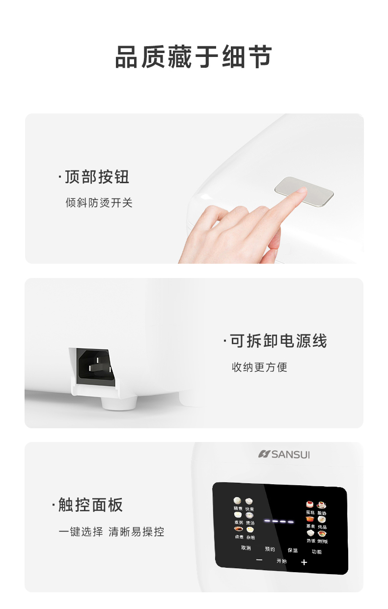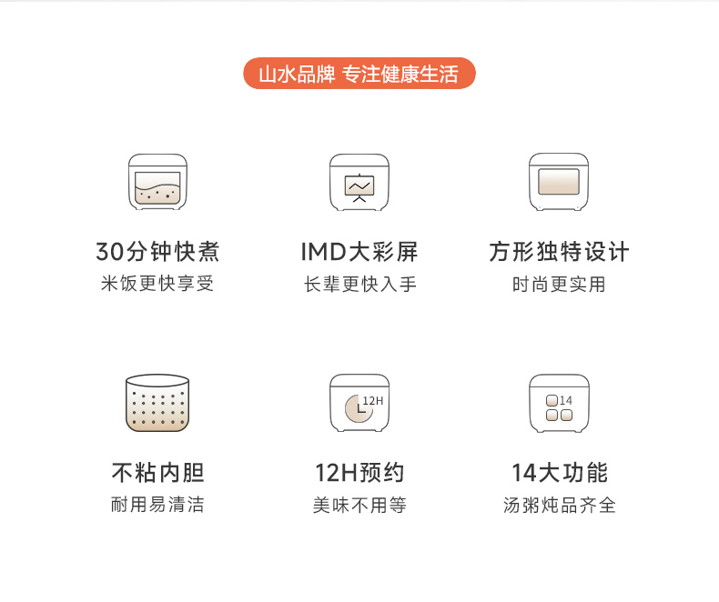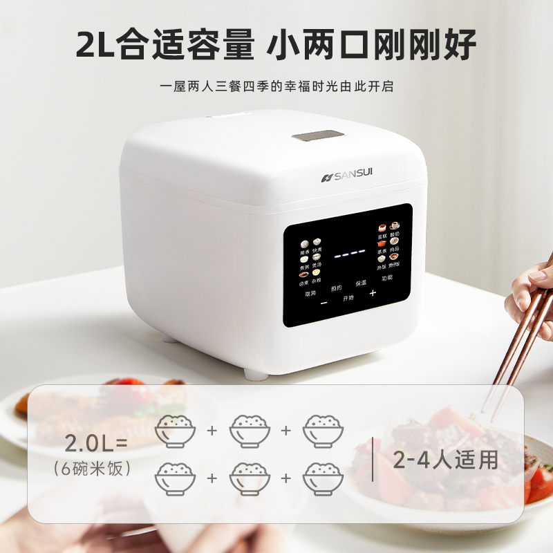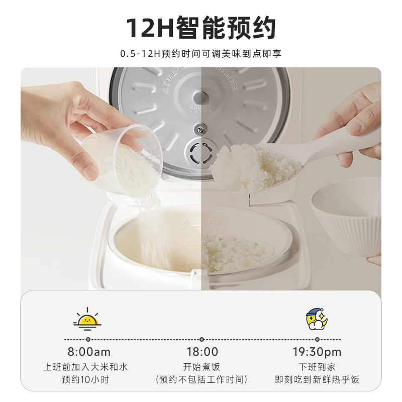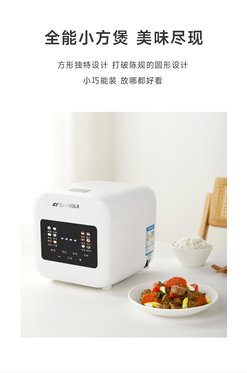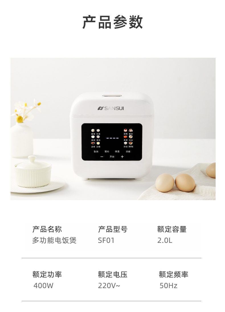 额定功率:400W 额定容量:2.0L 精致小容量 IMD大彩屏操作界面、方形独特设计 陶瓷油不粘内胆、12小时智能预约功能 14大功能菜单 包装方式: 彩包+邮购箱