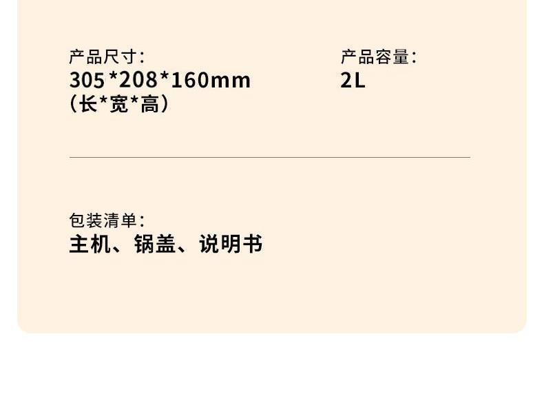 内胆深8cm,宽20cm,煮面、煮粥不怕溢出,面饼不用掰碎,整个吃更过瘾;
