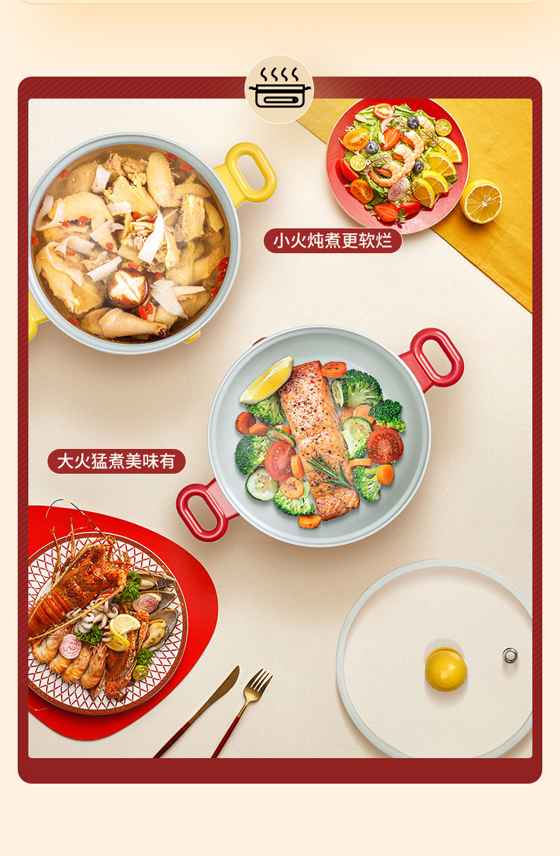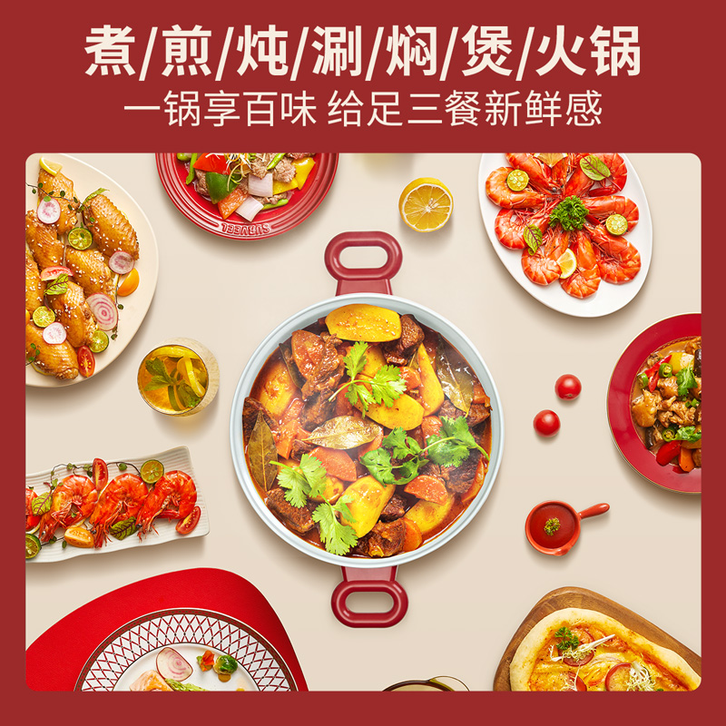 外壳+手柄防烫设计,不怕被烫伤,可以直接端上桌享用美食