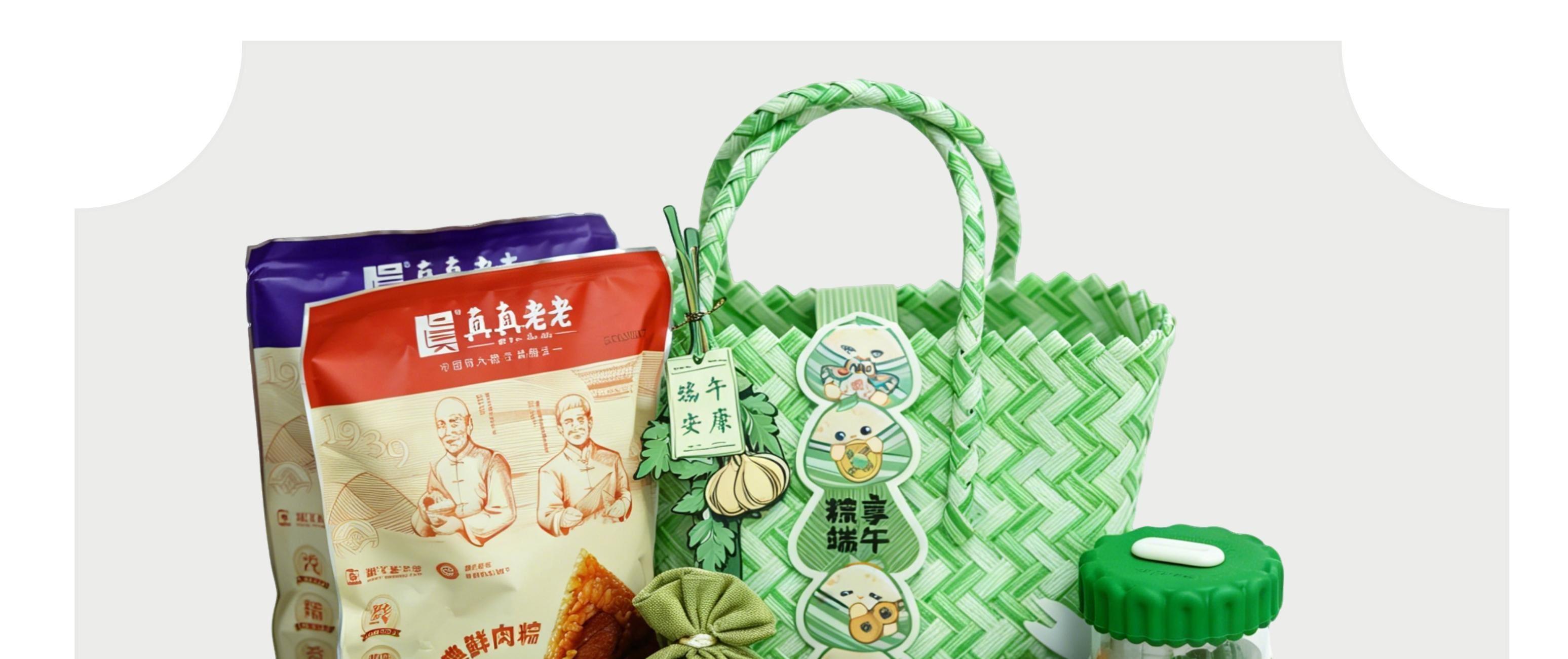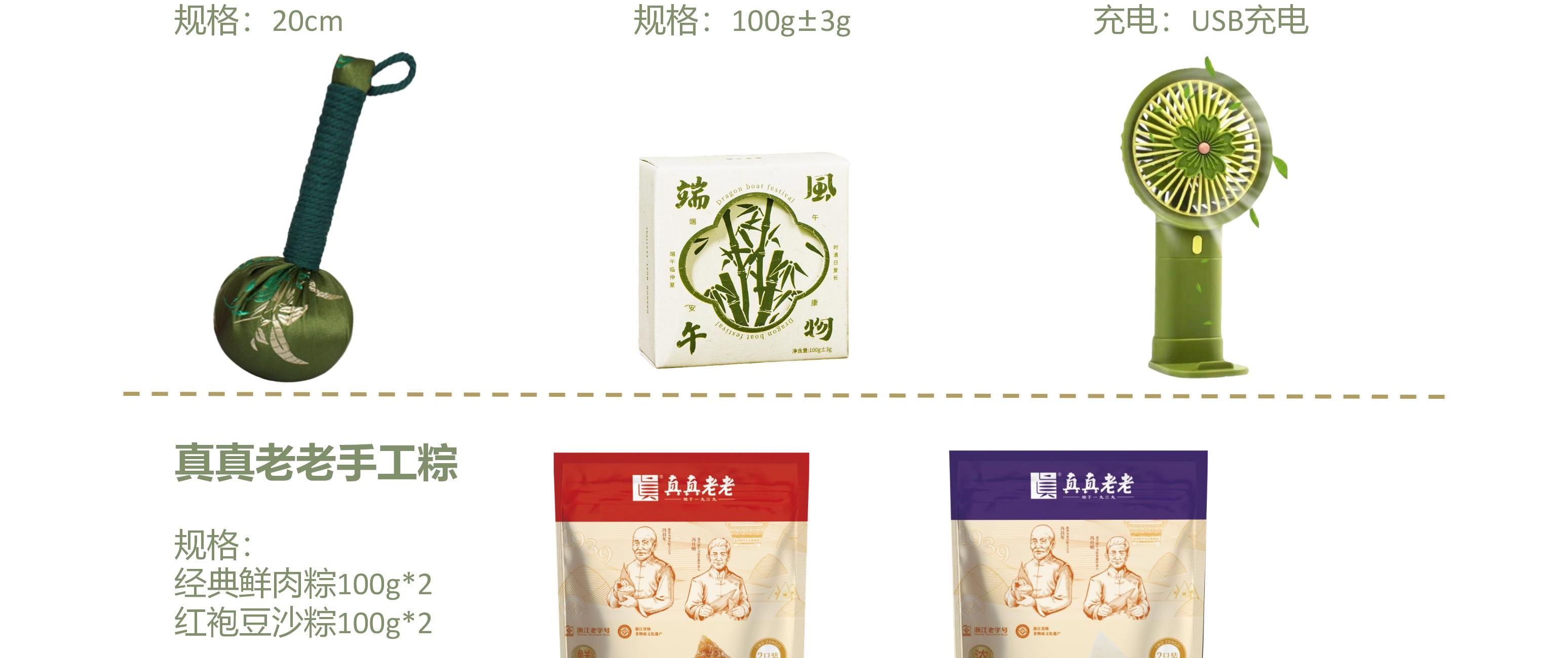 真真老老经典鲜肉粽100g*2 真真老老红袍豆沙粽100g*2 端午风物艾草精油香皂100g 绿丝竹艾草养生按摩锤20cm 绿色小花随行风扇(三档风+usb) 清新绿白拼色编织手提篮 端午腰封+风物吊牌 提篮尺寸:长32高21底长21底宽12